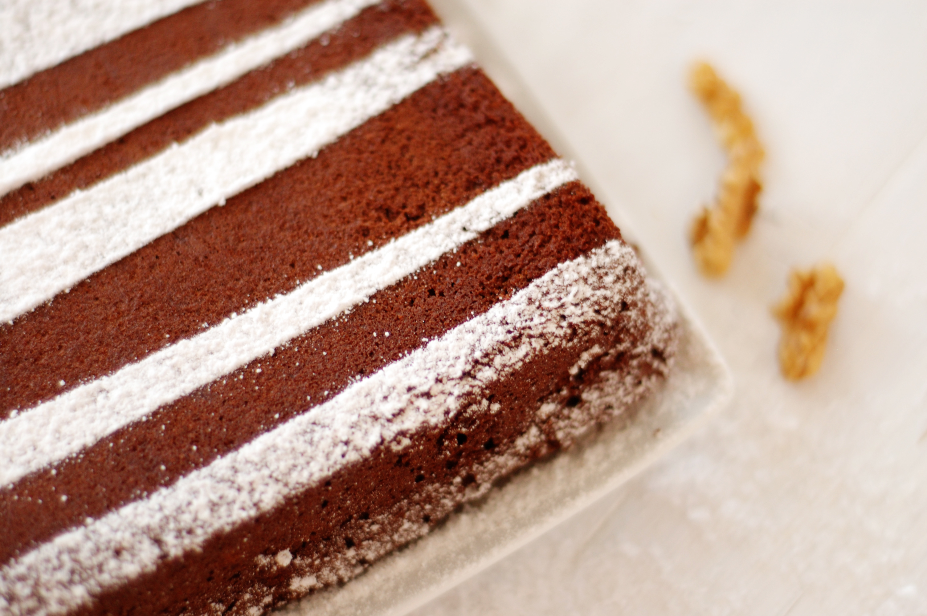 Le premier des ingrédients, celui qui a été à la base de ce gâteau… c’est les noix ! Achetées sur un marché à Grenoble, on a tout de suite eu envie de les manger dans un bon gâteau au chocolat. La recette s’est construite d’elle-même au fur et à mesure.
